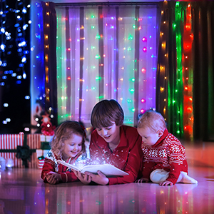 Curtain Lights, 8 Modes Fairy Lights String with Remote Controller, IP64 Waterproof, USB Plug in Twinkle Lights for Weddings, Parties, Backdrop, Wall Decorations, 300 Led( 9.8x9.8Ft, Multicolor)
