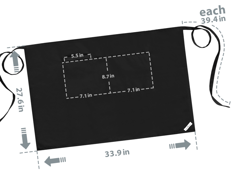 Long Server Apron Black with 3 Pockets Bistro Half Aprons for Men Women Waiter Waitress Chef 28 Inch Waterproof