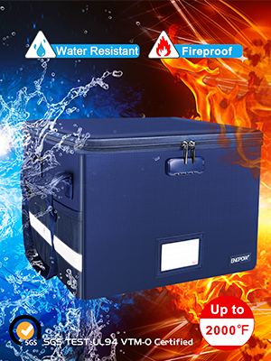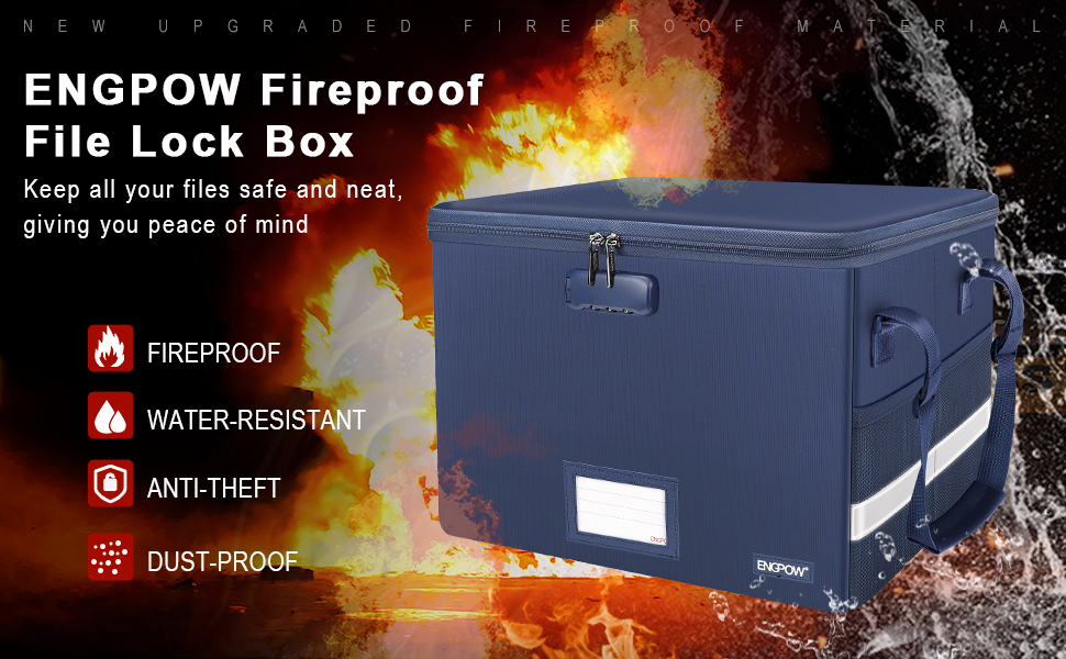 The ENGPOW Fireproof Document Box is a portable, collapsible file organizer designed for professional-grade protection. Crafted from anti-static, double-layered silicone coated fiberglass, it withstands temperatures up to 2000℉ and offers water resistance. With a 33-liter capacity, it accommodates both letter and legal files, secured by a combination lock and zipper lid. Additional features include dust-proof materials, reflective strips for night visibility, and a sturdy handle for easy transport—making it the ultimate safeguard for your important documents and valuables.